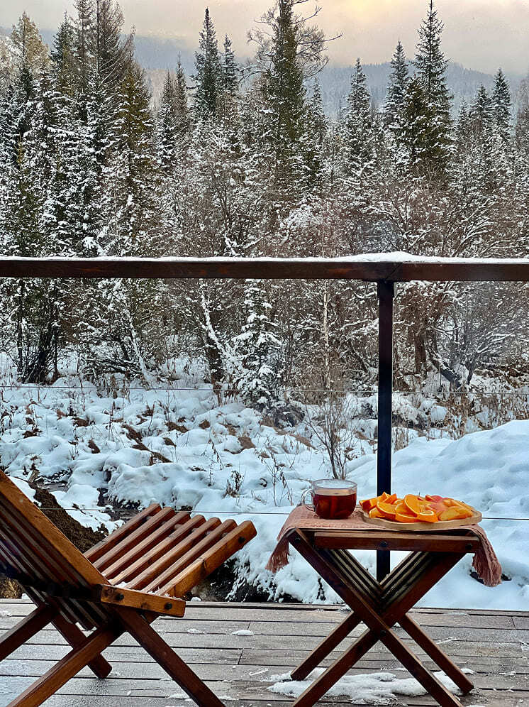 «Сны Алтая» — это комфортный экоотель у подножия Семинского перевала с видом на заснеженную вершину горы Сарлык